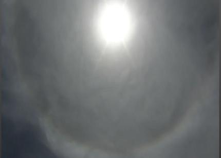 A auréola observada - um halo, na terminologia científica - é provocada pela passagem de raios solares através de microcristais de gelo dos cirros - as nuvens esfarrapadas na alta atmosfera (mais de 20 quilómetros de altitude) - formando uma espécie de lente que dá o efeito circular à volta do Sol. É o chamado "disco de Airy" (em homenagem ao astronómo britânico do século XIX George Airy que descreveu o fenómeno), que pode ser observado também à noite em volta da Lua. Por causa da geometria (faces hexagonais) das partículas microscópicas, produz-se a difracção (mudança de direcção).