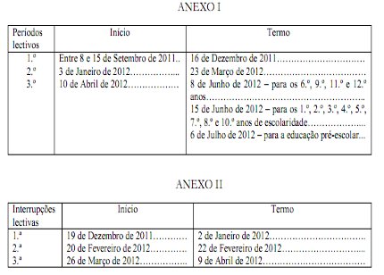 Calendário escolar 2011_2012