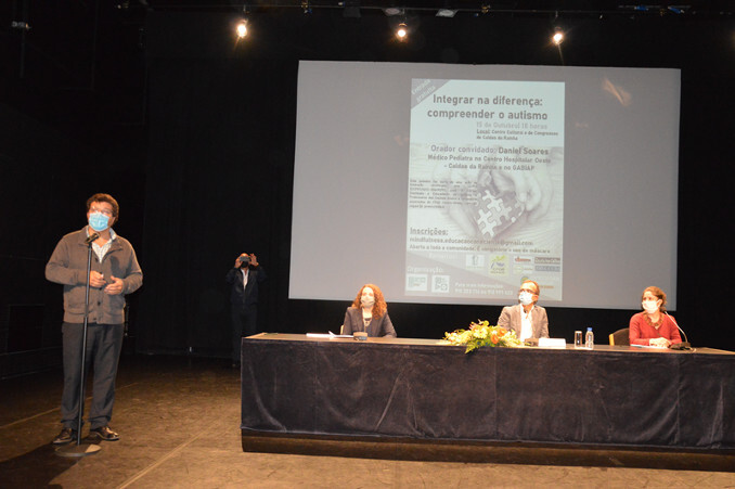 O médico pediatra iniciou a palestra explicando o que é a PEA, descrevendo que é uma condição que perturba o desenvolvimento global, que surge precocemente e que se manifesta num conjunto de caraterísticas que diferem de criança para criança.