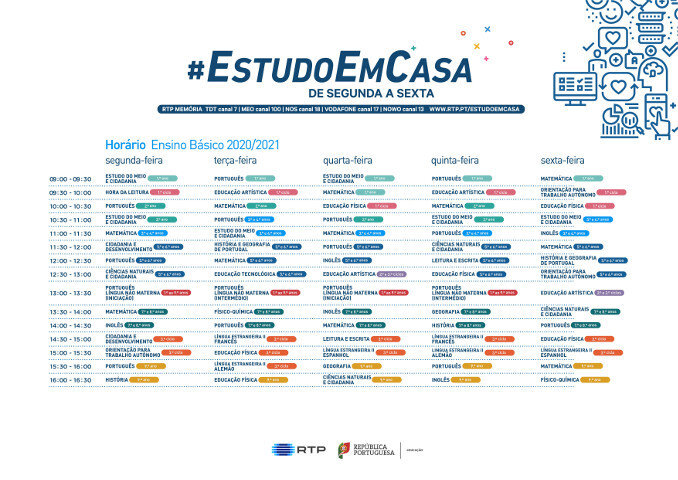 O #EstudoEmCasa 2020/2021 para o Ensino Básico vai ser transmitido na RTP Memória, nos seguintes canais: