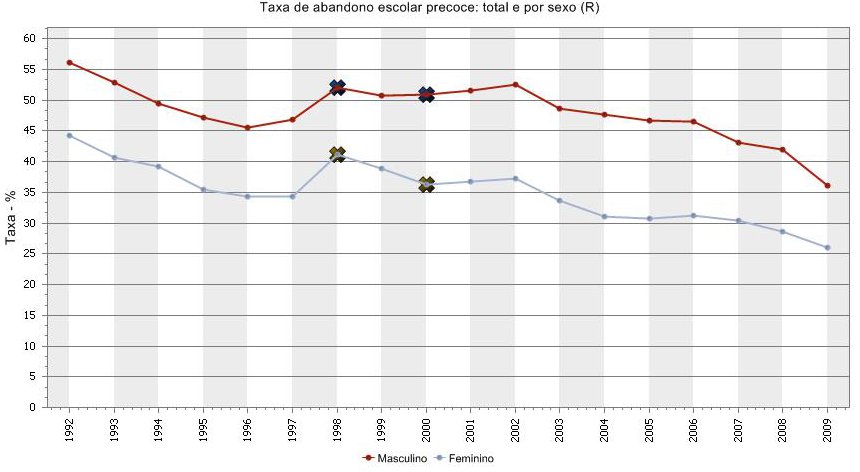 Taxa de Abandono Escolar por Sexo Taxa de Abandono Escolar por Sexo Reading Mode aA aA Smaller Font Bigger Font Share This Tweetar Share share with Whatsapp Média em 2009 31,2% Masculino 36,1% Feminino 26,1% Fonte PORDATA Previous Article A Educação em Portugal continua a divergir do Norte da Europa Next Article Taxa Real de Escolarização Portuguesa Novidades Recentes Como pedir ao ChatGPT para listar Agrupamentos de Escolas por proximidade usando QZP Listas Concurso Nacional 2025/2026 Concurso de Educadores de Infância e de Professores dos Ensinos Básico e Secundário: ano escolar de 2025-2026 Ferramenta Guia das Escolas - para o concurso extraordinário e o apoio à deslocação para docentes Ministro da Educação explica o Plano de Emergência Aprender Mais Agora Recomendamos