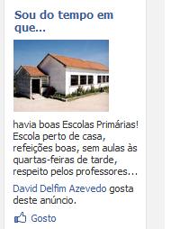 Sou do tempo em que havia boas Escolas Primárias Sou do tempo em que havia boas Escolas Primárias Reading Mode aA aA Smaller Font Bigger Font Share This Tweetar Share share with Whatsapp Criamos a campanha no Facebook "Sou do tempo em que havia boas Escolas Primárias" Queremos saber como foi a tua experiência na antiga Escola Primária. Se vires o anúncio no FaceBook adere a ele com um simples "Gosto" ou "Aderir". Podes visitar a página nesta ligação. A minha página pessoal é http://www.facebook.com/ddazevedo e a do Ensino Básico é http://www.facebook.com/pages/EnsinoBasicocom/106406916057551 , a página do grupo é http://www.facebook.com/group.php?gid=148013841875929 Previous Article Actualização - Listas de manutenção e não manutenção da situação de doença ou deficiência Next Article O Estado quer saber dos nossos Filhos? Novidades Recentes Como pedir ao ChatGPT para listar Agrupamentos de Escolas por proximidade usando QZP Listas Concurso Nacional 2025/2026 Concurso de Educadores de Infância e de Professores dos Ensinos Básico e Secundário: ano escolar de 2025-2026 Ferramenta Guia das Escolas - para o concurso extraordinário e o apoio à deslocação para docentes Ministro da Educação explica o Plano de Emergência Aprender Mais Agora Recomendamos
