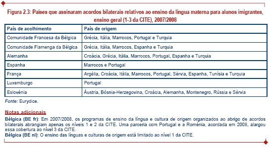 Como mostra a figura seguinte, 6 países assinaram acordos bilaterais sobre a oferta de ensino na língua materna para os alunos imigrantes no quadro escolar.